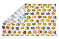 Легкое покрывало невысокой плотности стеганного типа с совами. Преимущества изделия в основном это его универсальность - им можно пользоваться как покрывалом, так и как одеялом. В качестве наполнителя используется силиконизированное волокно, а в качестве чехла - сатин (хлопковая натуральная ткань). Состав изделия позволяет стирать его при высоких температура, при этом наполнитель не будет терять своей начальной формы.