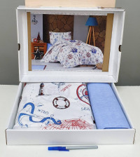 Сатиновое постельное белье 539 в дизайне Морское от украинской фирмы Viluta упаковано в фирменною коробку.