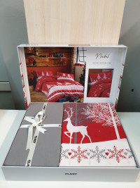 Евро комплект Пододеяльник: 200х220 (1шт), простынь: 240х260 (1шт), наволочка: 50х70 (2шт).Постельный комплект турецкого бренда First Choice Happyness navi blue в новогоднем дизайне подарит уют и тепло в прохладное время года.
