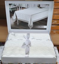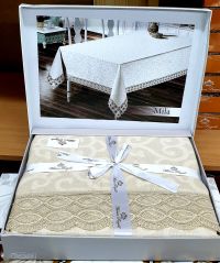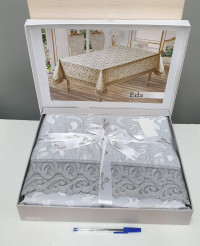 Упаковка: подарочная коробкаСкатерть с жаккардовым рисунком Eda прямоугольного типа в белом цвете от турецкого производителя. Края скатерти оформлены кружевом в виде гипюра, что прибавляет изделию более роскошный вид. Скатерть изготовлена из полиэстера, благодаря чему не будет скатываться после многих стирок и не потеряет свой товарный вид при длительном использовании.