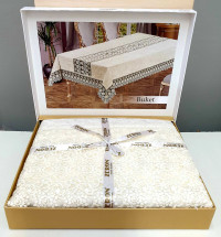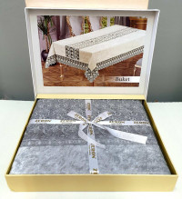 Упаковка: подарочная коробкаВелюровая скатерть с жаккардовым рисунком Defne прямоугольного типа в сером цвете от турецкого производителя. Края скатерти оформлены кружевом в виде гипюра, что прибавляет изделию более роскошный вид. Скатерть изготовлена из полиэстера, благодаря чему не будет скатываться после многих стирок и не потеряет свой товарный вид при длительном использовании.