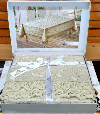 Скатерть золотистая в наборе с салфетками 35х35, жаккард